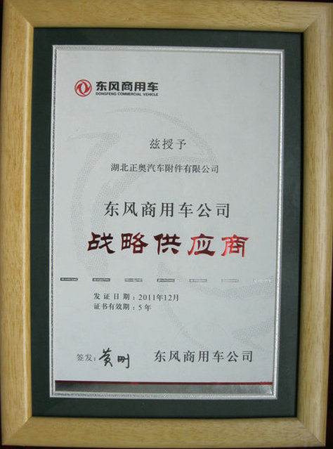 在這次盛會上,正奧公司載譽(yù)而歸,喜獲三項(xiàng)項(xiàng)殊榮,分別是:東風(fēng)商用車戰(zhàn)略供應(yīng)商、“2011年度優(yōu)秀供應(yīng)商”和“2011年度質(zhì)量優(yōu)勝“。