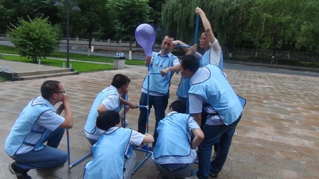 在拓展項(xiàng)目訓(xùn)練中,大家聽從指揮、服從安排,整個(gè)活動(dòng)在緊張、激烈、歡聲中度過。活動(dòng)開始,教練把參訓(xùn)人員分成“天藍(lán)色、深藍(lán)色、橙色、紅色、淺綠色、深綠色6支隊(duì)伍。在統(tǒng)一著裝及熱身后,大家便以小隊(duì)為單位投入到緊張的訓(xùn)練課程中?;顒?dòng)包括指壓板、撕名牌、真人CS、呼吸的力量、同心鼓、動(dòng)力圈等項(xiàng)目,每一項(xiàng)訓(xùn)練,都是一次感動(dòng),每一次感動(dòng),都帶來一次心靈的震撼。每個(gè)游戲結(jié)束后,大家都對失敗的原因進(jìn)行深刻總結(jié),通過總結(jié)去領(lǐng)悟活動(dòng)中所蘊(yùn)含的理念和精神。讓大家深刻感受到了溝通、合作、相互激勵(lì)、融洽人際關(guān)系以及尊從團(tuán)隊(duì)規(guī)范的重要性。如:“呼吸的力量”項(xiàng)目需要把各自隊(duì)伍分成 “領(lǐng)導(dǎo)組”“指揮組”和“執(zhí)行組”3個(gè)組。各小組成員各負(fù)其責(zé),由“領(lǐng)導(dǎo)組”成員向“指揮組”成員描述“呼吸機(jī)”的構(gòu)造及制作方法,再由“指揮組”傳達(dá)并指導(dǎo)“執(zhí)行組”動(dòng)手制作。如何向其他成員描述機(jī)器的構(gòu)造和制作方法,以便耗時(shí)最短最高效的完成“呼吸機(jī)”的制作,考驗(yàn)著大家上傳下達(dá)的語言技巧、溝通的能力和協(xié)作能力。還有在最后進(jìn)行的“動(dòng)力圈”項(xiàng)目,更是將團(tuán)結(jié)協(xié)作作用發(fā)揮到了極致,所有人圍成圓形,用力將柔軟的繩索向后拉扯,讓繩索變成一條鋼鐵般堅(jiān)硬的繩圈,各自的隊(duì)長在繩子上抱圓走完全程!成功與否,在于對團(tuán)隊(duì)成員信任,這種信任感來源于100%的執(zhí)行力和團(tuán)隊(duì)協(xié)作能力!最終每個(gè)隊(duì)的隊(duì)長安全的走完了全程,活動(dòng)在“眾人劃槳開大船”的激昂音樂中完滿結(jié)束。 一天的活動(dòng),每個(gè)人都有一份收獲、一份感悟。大家高效執(zhí)行、自我挑戰(zhàn)、互助協(xié)作、克難攻堅(jiān),增加了大家對團(tuán)隊(duì)的理解和對自我價(jià)值的衡量。激發(fā)了大家克服了困難、克服了人性的弱點(diǎn),真正的領(lǐng)悟到了團(tuán)隊(duì)力量的強(qiáng)大,只要大家心往一起想、勁往一處使,任何困難和挫折都會(huì)被我們踩在腳下、拋在腦后,團(tuán)隊(duì)目標(biāo)也一定會(huì)實(shí)現(xiàn)!