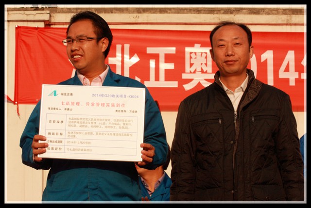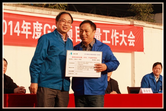 到會領導為G29項目組成員頒發(fā)了戰(zhàn)表,為下一階段的改善制定新的挑戰(zhàn)目標,全體員工見證了這一重要時刻,并在會議現(xiàn)場用熱烈的掌聲表達了完成任務的信心和決心。
